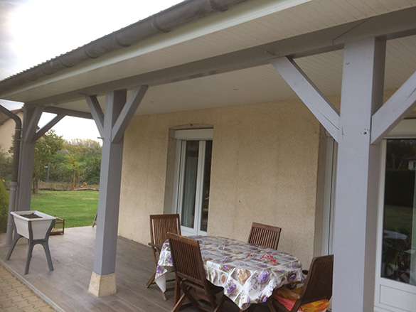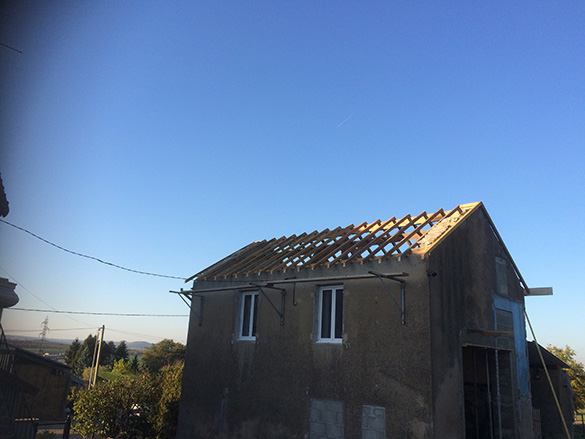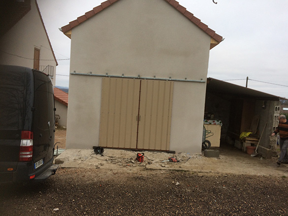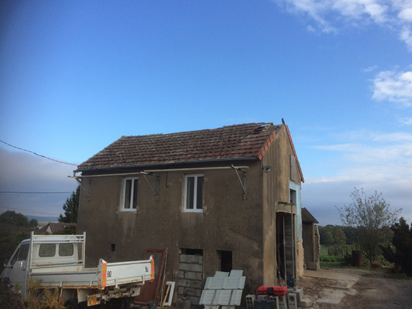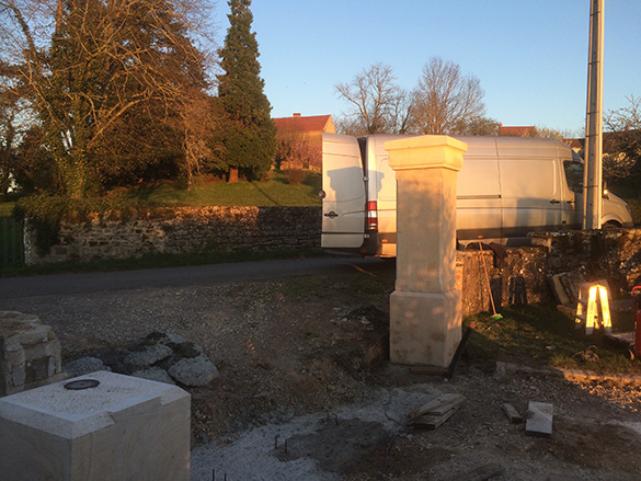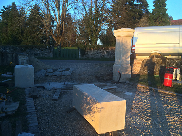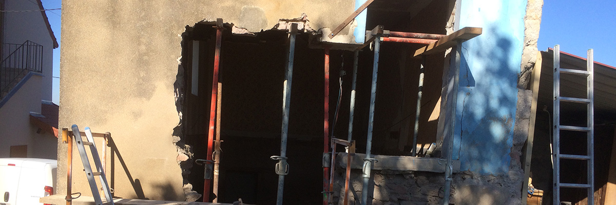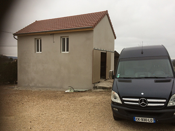 Exemple : réalisation de murets et pose de couvertines, dalle béton, création d’ouverture dans bâtiment existant, débord de toit, enduit…..